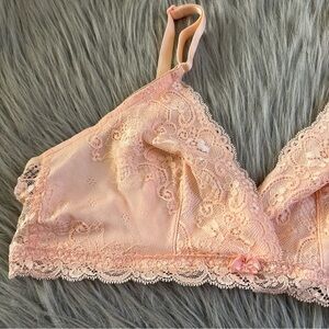 Smart & Sexy Wirefree Bralette Womens Size 38 Pink Floral Lace Wireless Bra