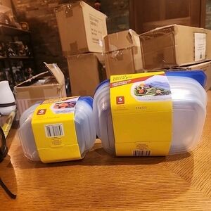 Set of rectangular containers with blue lids. Perfect for storage and organization.