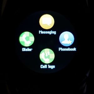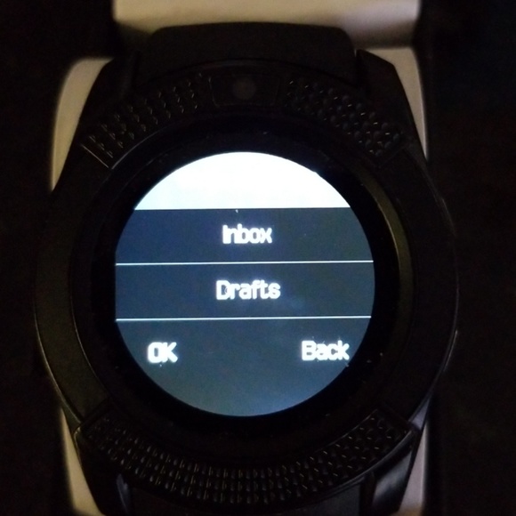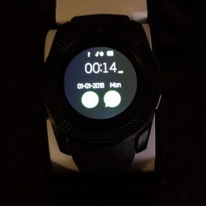 Black smart watch. Holds a small sim card.(sim card not included) Texting, phone calls, browsing everything ur phone can do, this watch can do. Comes with USB wire for charging and original box.