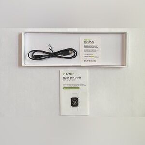 Smart watch, tracks heart rate, steps, and sleep for total health monitoring. Easy-to-use interface and long battery life for daily wear. Compatible with iOS and Android for seamless syncing. Comes in the original box, with charger and instructions.