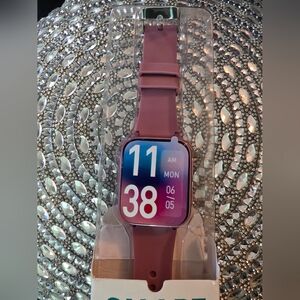 Smart watch with multi-function features. Colorful design with pink accents.