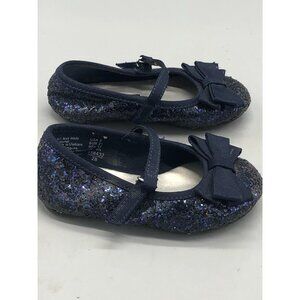 Smart fit dress flat shoes bow sparkle blue toddler size 5 hook & loop READ
