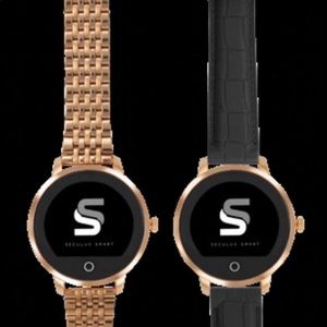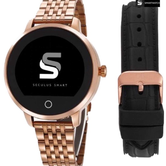 seculus Clock with round format box with touch screen. Seculus Smart is an electronic product. It has 13 display options. Accompany two bracelets, one classic in metal and one made of silicone rubber. Main features: - Wireless Charger - Voice Command - Receives and made calls via cell - Voice Recorder - Pedometer - Cardiac Frequency - Intelligent Alarm