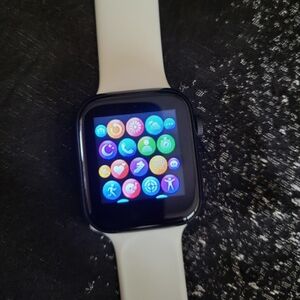 Smart watch with charger works for any phone use Sim card for it Makes calls messages games.and alot more
