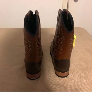 The square toe gives this cowboy boot a modern flare. It features a combination upper with stitched design, dual pull tabs, smooth lining, padded insole, 1" stacked heel, and a skid-resistant outsole. Manmade materials. New without box