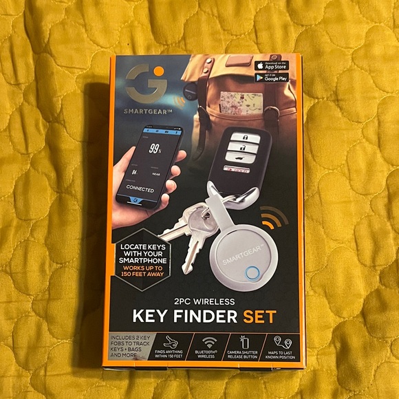 SmartGear 2-piece wireless key finder set. Includes a sleek gray key tracker and smartphone connectivity. Easily locate keys with your smartphone. brand New. Never opened