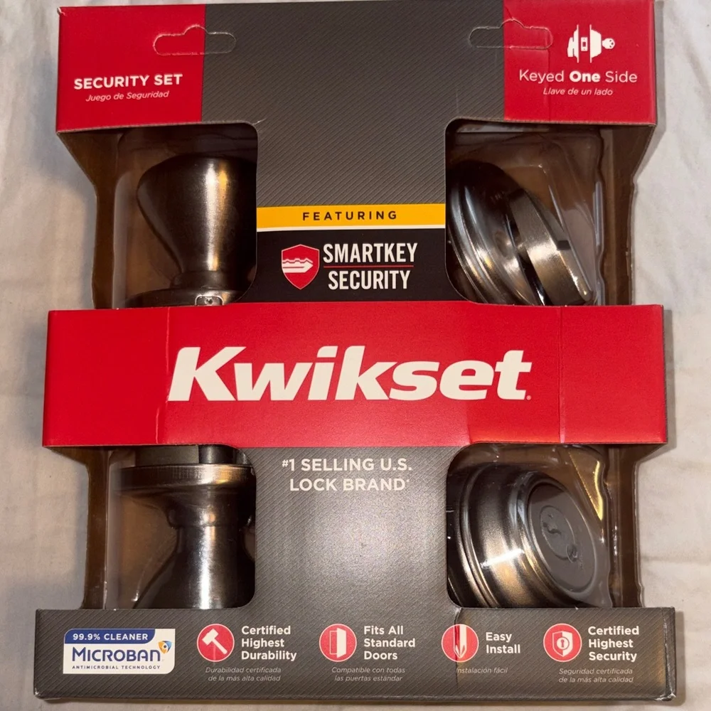 SmartKey security lock set with advanced re-key technology. Easy installation and fits all standard doors.