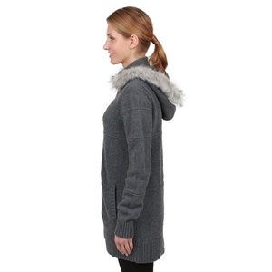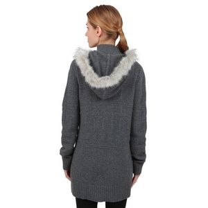 Gorgeous, classy warm sweater by SmartWool -- Women's Crestone Hooded Sweater. This regular-fit women's hooded sweater has the flair of a winter lifestyle jacket, with faux fur trim around the hood and a timeless winter knit pattern. It's made from a blend of plush Merino wool and durable nylon yarns with ribbing at the cuffs and hem. It zips up in front and includes handwarmer pockets. Wherever your winter adventures take you, the Crestone Hooded Sweater provides cozy warmth in a versatile silhouette. 63% Merino Wool/35% nylon fabric; 2-way front center zipper.