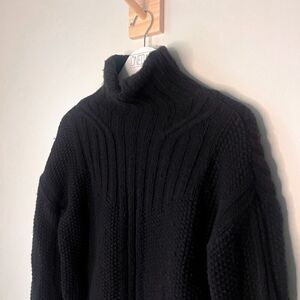 SmartWool Lambswool Chunky Turtleneck Sweater in Black. Features chunky knit, long sleeve, turtleneck, & detailed knit pattern. In good condition. No holes, rips, or stains. Ours is a pet & smoke free home.
