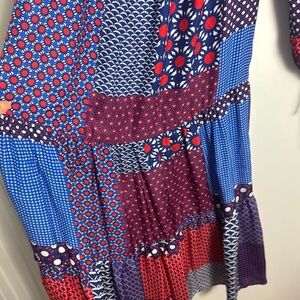 Smarteez Italy 100% Silk Patchwork Off Shoulder Red White and Blue Midi Dress 2