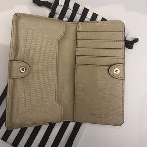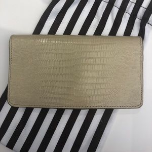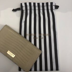 Henri Bendel West 57th XL Lizard Case. Used once, snap closure, 5 credit card slots and slip for bills/receipts. It will fit an iPhone regular or Plus model. Not sure about the iPhone X or any other phone. Dust case included