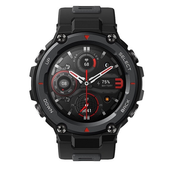 The Amazfit T-Rex Pro comes with a 1.3" HD AMOLED always-on color screen. The outer bezel undergoes a metal-spraying process, which enhances the rich textures of the light 60g watch body with a skin-friendly silicone strap.
