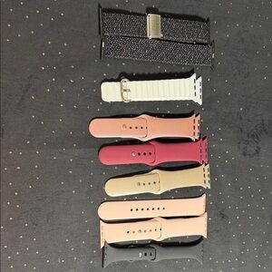 Enhance your smartwatch with this versatile band set. Featuring a range of colors including black, cream, pink, and white, these bands offer both style and comfort. Perfect for any occasion.