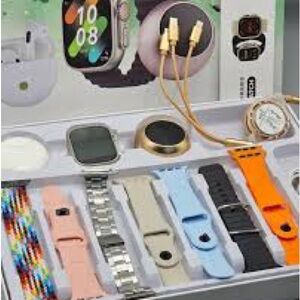 Explore the ultimate smartwatch and accessories set featuring a variety of vibrant bands. Perfect for tech enthusiasts looking to personalize their wearable experience.