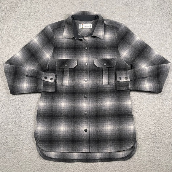 Smartwool Anchor Line Shirt Jacket Womens S Black Shadow Plaid Merino Pearl Snap
