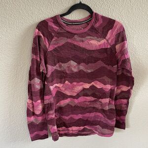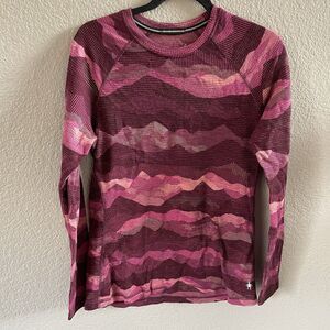 Smartwool Base Layer Top Womens 1X Merino 250 Crewneck Purple Pink Camo Shirt