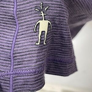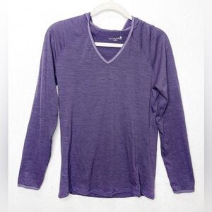 Smartwool Base Layer Women’s Medium Hooded Pullover V Neck Stripe Wool Purple