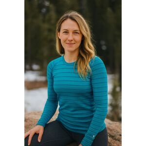 Smartwool Blue Stripe Wool Long Sleeve Shirt Tee Top Women's Size Small