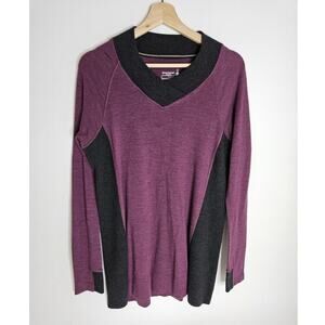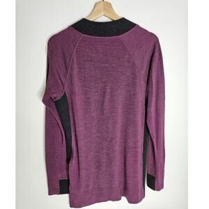Smartwool Burgandy V-Neck Ribbed Sweater Size Large Colorblock Merino Wool Tunic