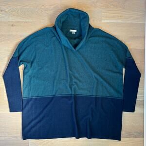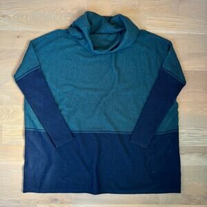 Smartwool Edgewood Wool Blend Poncho Knit Sweater Cowl Neck Womens Medium. Acrylic-wool blend. Very lightweight, soft, and cozy. Oversized, baggy fit. Fitted sleeves. Drop shoulder. Loose cowl neck. Dark teal and navy color block. Excellent preloved condition - slight pilling. Smoke free home. NEXT DAY SHIPPING.
