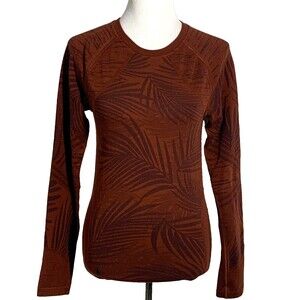 Smartwool Intraknit Active Base Layer Crew Top Womens L Rust Leaves Wool Blend