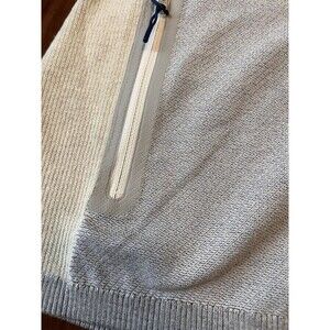 Flaws to be addressed: there is one small pink stain on the right side of the sweater; pocket area.