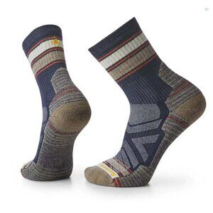 Smartwool Men's Medium Hike Stripe Light Crew Socks Blue Deep Navy Tan NWT