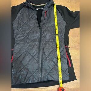 Black and gray jacket with red detailing made with merino wool. In great condition , no known stains or holes