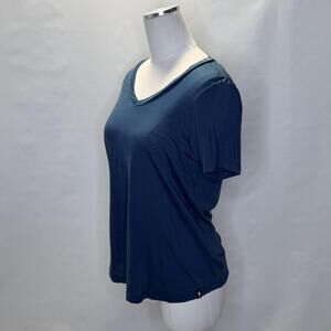 Smartwool Merino Sport 120 Shirt Womens Small Blue V Neck Short Sleeve Wool