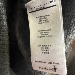 Smartwool Merino Wool 1/4 Zip Ribbed Collar Men's L Grey Long Sleeve