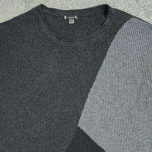 Smartwool Merino Wool Blend Black Gray Diagonal Colorblock Ribbed Sweater