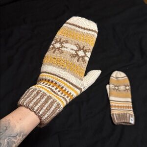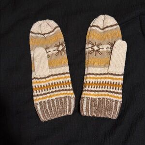 Smartwool mittens featuring a Nordic pattern in cream, brown, and yellow. Brand new, never worn, excellent condition.