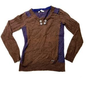 Smartwool Piney Lake Sweater Women Size S 100% Merino Wool Brown Blue Henley
