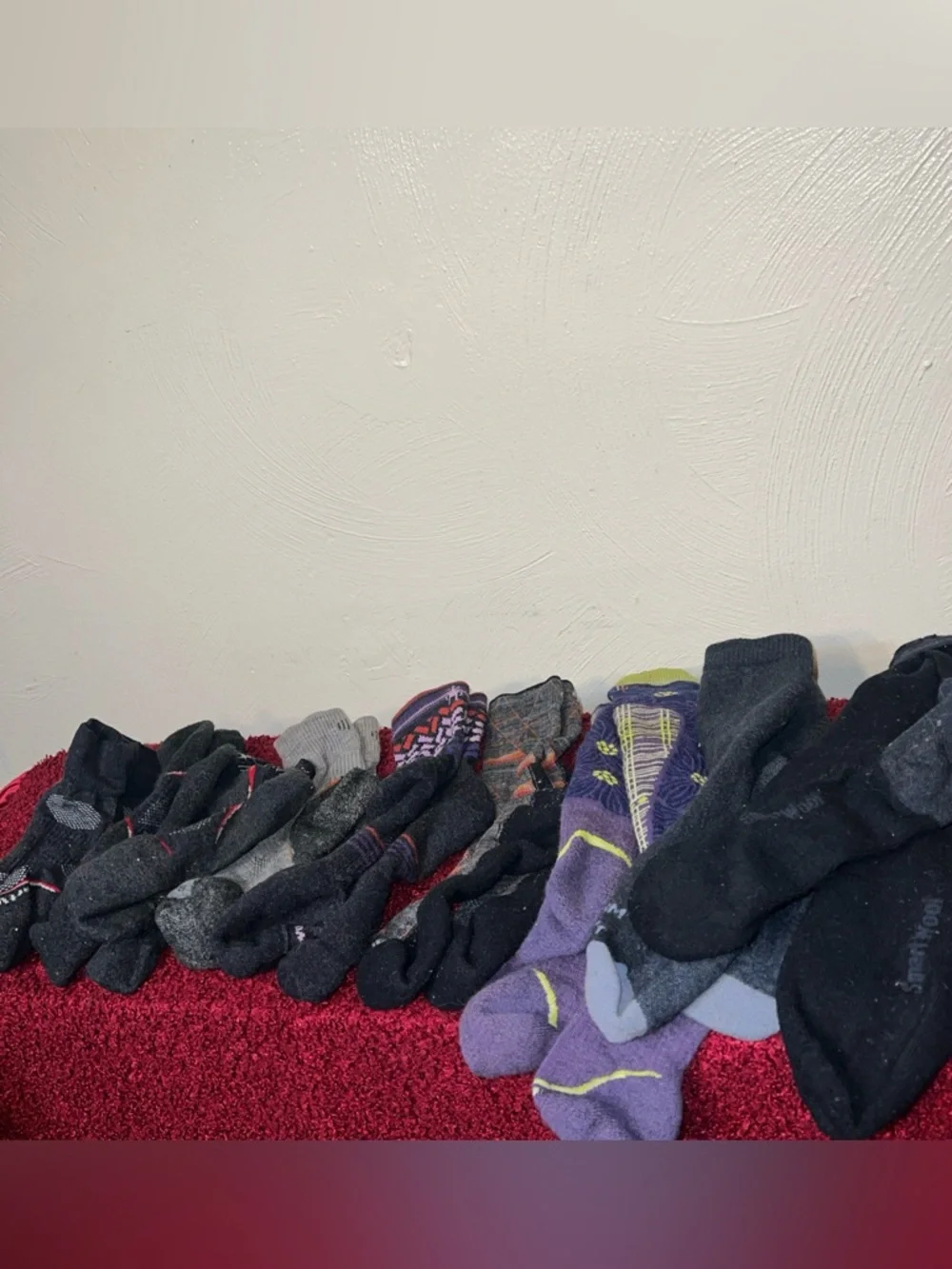 The product is a set of 9 pairs of Smartwool socks in unisex size large, featuring a striped pattern in multicolor. Made from a blend of Merino wool, nylon, and elastane, these crew socks are machine washable and designed for casual occasions, with a mid-calf length and full toe style. Perfect for winter, fall, and spring seasons, they are ideal for everyday wear and hiking activities. Proudly made in the USA, these Smartwool socks offer comfort and style for men and women alike.