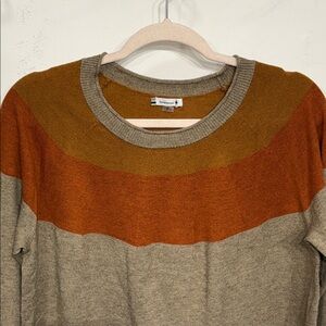 Cozy sweater with rich earthy tones. Ideal for layering.