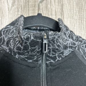 Smartwool Top Merino Wool Black Gray Floral Print 1/4 Zip Mock Neck Size S