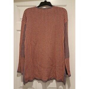 Smartwool Woman's Size L Orange/Gray V-Neck Long Sleeve Sweater Ribbed Stretch