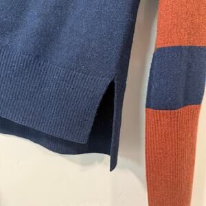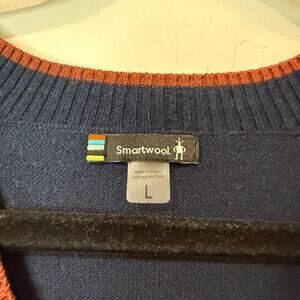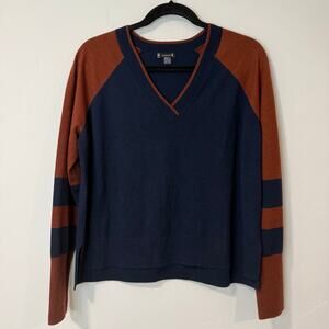 Smartwool Women's Edgewood V-Neck Sweater Boxy Crop Navy Orange Large Wool