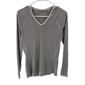 Smartwool Women’s S Hooded Base Layer Gray Stripes Outdoorsy Hiking Gorpcore