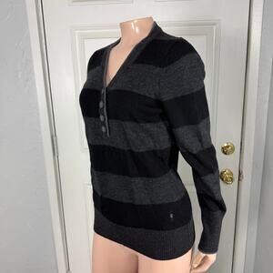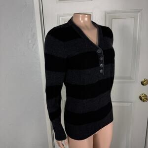 Smartwool Women's Sweater Large Henley Merino Wool Striped L/S Knit U3-4