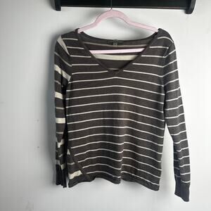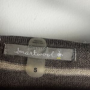 Smartwool Womens White Gray Striped Merino Wool V Neck Lightweight Sweater Sz S