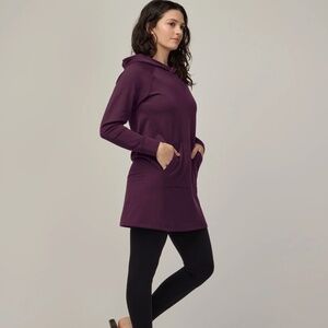 Casual, lounge, midi, beach, comfort, wool, natural fabric, Smartwool, berry color, maroon color, hooded dress, long sleeve, dress, tunic, travel friendly, natural fiber, cozy, comfy, classic, mini