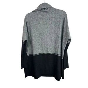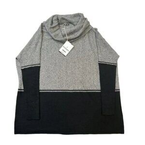 Details: Lightweight knit sweater, Ribbed, cowl neck collar, and drop collar sleeves Color blocked style.