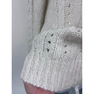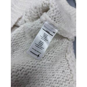 Smartwool brand women's size XS ivory off white Moon ridge boyfriend oversized sweater. In good pre-owned condition, has some light wear on sleeve cuffs and one small spot on the main knit. Please reviews pics before purchase, I have not tried to remove any spots. Chunky knit fisherman style tunic sweater with a cowl neckline.