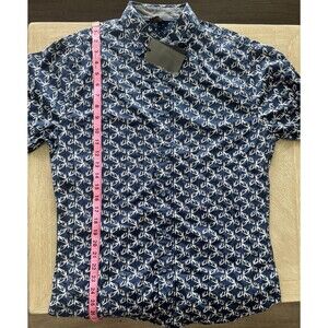 Smash Mens Shirt Small Button Up Blue Bamboo Print Long Sleeve Flip Cuffs RP $75