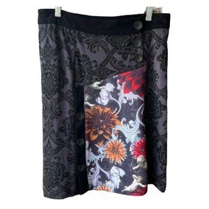 Smash! casual skirt, size M. Black & floral print patchwork pattern with button detailing at the front. 70% viscose, 25% polyester, 5% spandex. Very gently worn, in great condition. Smoke-free home.