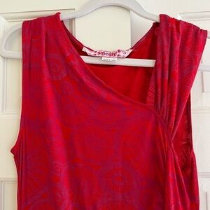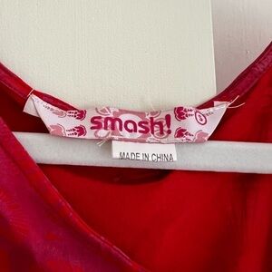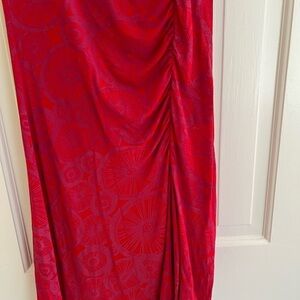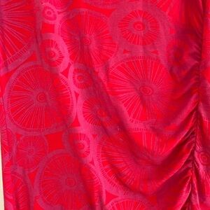 Smash! Ruched Asymmetrical Cotton Midi Dress Red and Pink Floral Detail Womens S