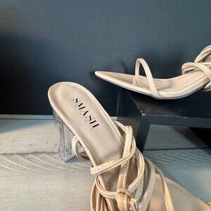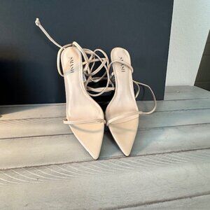 Smash Tabby Pointy Toe Heeled Sandals Wraparound Ankle Straps Nude NEW 11 NWT