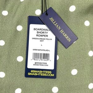 Smash + Tess Green and Cream Polka Dot Boardwalk Shorty Romper Size Large