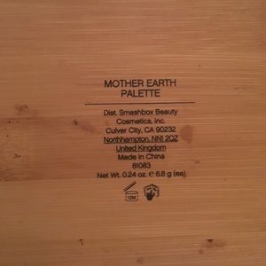 Smash box Mother Earth pallet! So beautiful, the pallet itself is wood, very earthy tones. 4 eye shadows and a blush used maybe once. Pallets a little dirty from sitting in my make up box but otherwise flawless. Believe this has been discontinued